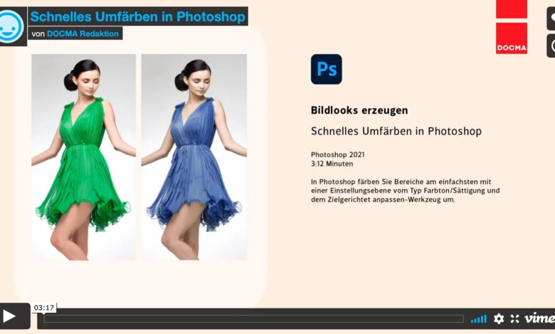 Spieldauer: 3 Minuten Direktlink: https://vimeo.com/497709448/02898c76df In Photoshop färben Sie Bereiche am einfachsten mit einer Einstellungsebene vom Typ »Farbton/Sättigung« um (a).…