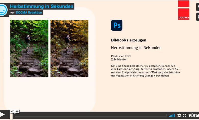 Direktlink: https://vimeo.com/497709587/8de2a05e9e Sie können Sie eine »Farbton/Sättigung«-Korrektur anwenden, um eine Szene herbstlicher zu gestalten. Klicken und ziehen Sie mit dem…