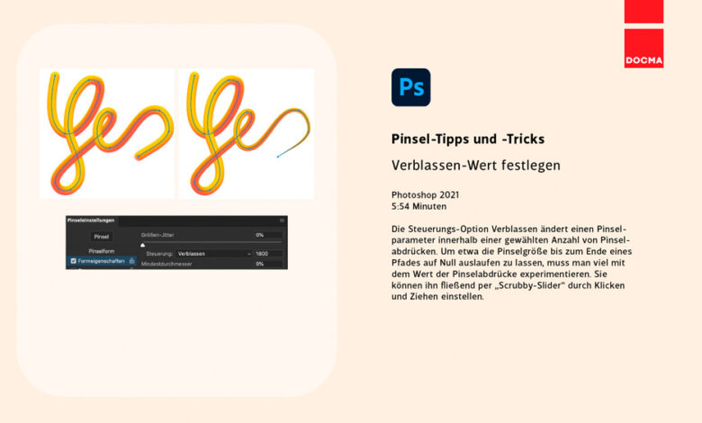 Spielzeit: 5 Minuten 59 Sekunden Direktlink zum Video »Verblassen« ändert einen Pinselparameter innerhalb einer gewählten Anzahl von Pinselabdrücken. Um etwa…