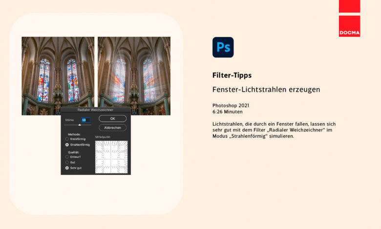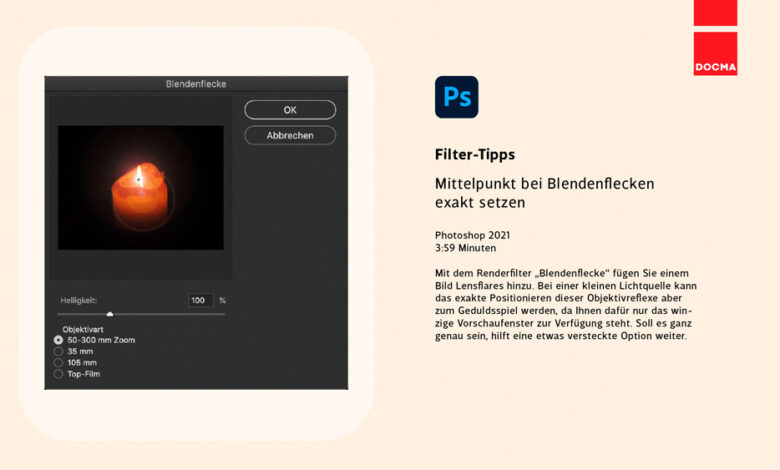 Spielzeit: 4 Minuten 4 Sekunden Direktlink zum Video Mit dem »Renderfilter > Blendenflecke« fügen Sie einem Bild Lensflares hinzu. Bei…