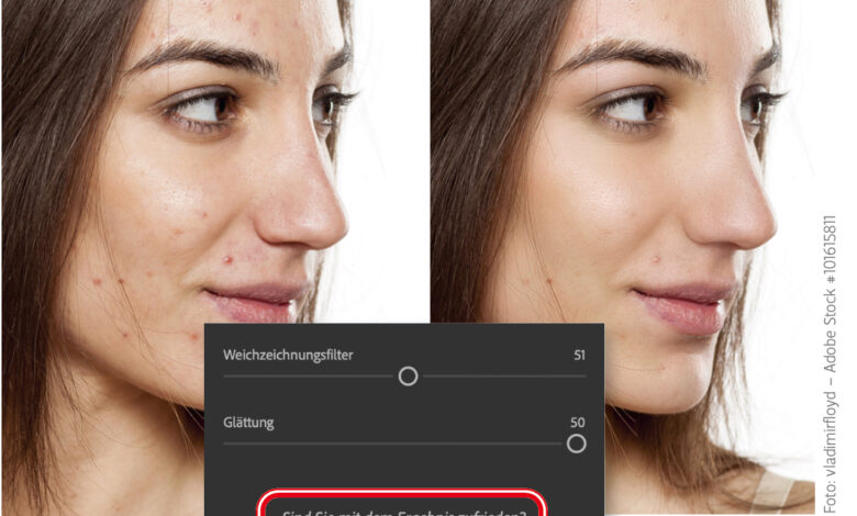 Der Filter »Hautglättung« zeichnet Haut nicht einfach weich, sondern reduziert auch Pickel und andere Hautstörungen. Das Ergebnis (a) kann sich…