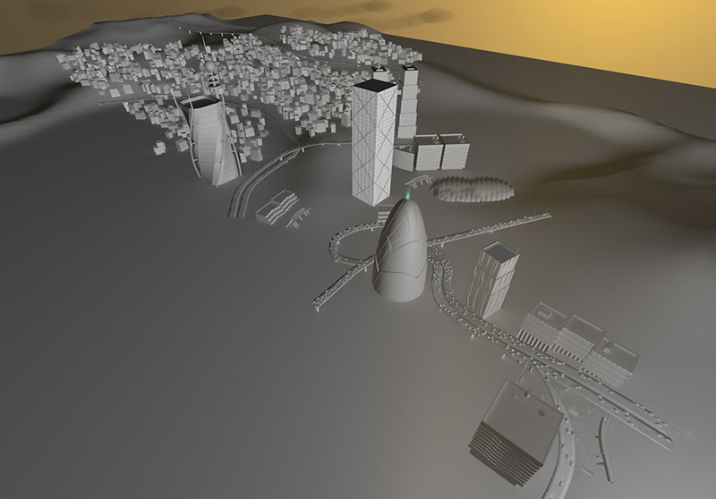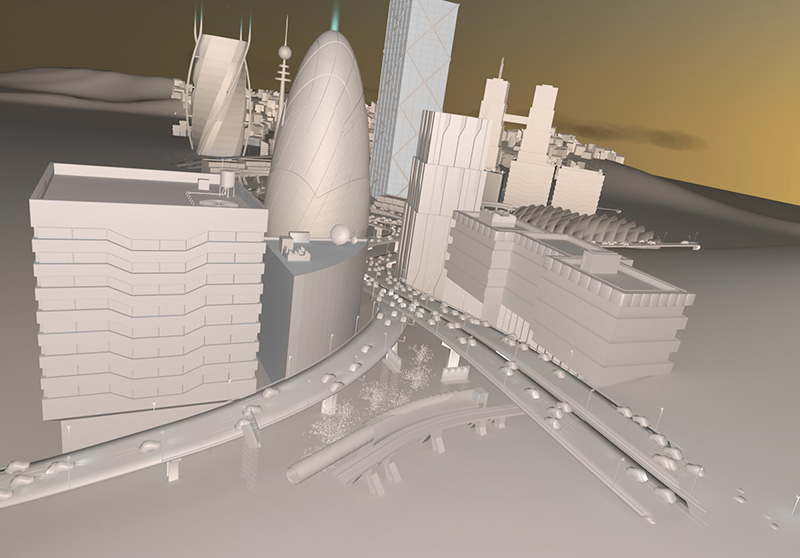 Die selbstgestellte Aufgabe lautete, aus ungewöhnlicher Perspektive das Porträt einer jungen Frau in eine 3D-Landschaft zu integrieren. Die Szene sollte lichtdurchflutet sein und eine ästhetische Verwandschaft mit einer Spiel- oder Filmszene haben. Beide Programme können so ihre jeweiligen Stärken ausspielen: Mit Cinema 4D ist es verhältnismäßig einfach, atemberaubende futuristische Städte zu generieren und mit nur einer Handvoll unterschiedlicher Gebäude den Eindruck einer großen Metropole zu erzeugen, ohne weit dafür zu reisen.