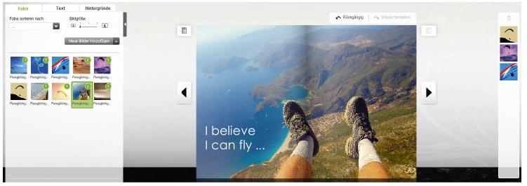 Ein gutes Fotobuch lebt von der Ausdruckskraft seiner Fotos und von der Spannung, die das Layout erzeugt. Dafür brauchen Sie keine komplizierte Editor-Software mit Dutzenden Spezialeffekten und verwirrenden Menüs, sondern intuitiv bedienbare, klar strukturierte Menüs und Layoutfunktionen, die ohne Umwege zu ansprechenden Ergebnissen führen. Genau diese Anforderungen erfüllt der Online-Editor von fotokasten: Die Software läuft plattformunabhängig und ressourcenschonend im Web-Browser; das Interface ist übersichtlich und bietet die Funktionalität, die Sie zur fachgerechten Gestaltung überzeugender Fotobücher benötigen.