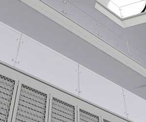 Es ist eine Kunst für sich, die Wünsche und Anforderungen anspruchsvoller Kunden zu verstehen und richtig zu interpretieren. Die Räume für Fujitsu sollten modern und futuristisch wirken, das Design jedoch nicht in eine zu phantasievolle Raumschiff-Ästhetik abgleiten. Deswegen wurde beim Modellieren der Architektur darauf geachtet, Formen, Materialien und technische Details einzusetzen, die einen hohen Bekanntheitsgrad besitzen. Also gibt es Schrauben am Geländer und eine allgemein nachvollziehbare Kombination aus Glas- und Stahloberflächen.