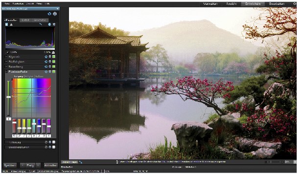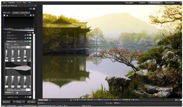 Ähnlich wie bei Adobe Photoshop Lightroom, werden Fotos im Rohdatenformat bei ACDSee Pro innerhalb nur einer Programmoberfläche behandelt. Der Unterschied mag nicht riesig sein, doch sind hier die jeweiligen Bereiche »Entwickeln« und »Bearbeiten« im Menü nur einen Mausklick voneinander entfernt. Dieser direkte Zugang und das gleichbleibende Interface machen es dem Anwender leichter, sich auf die kreative Umsetzung zu konzentrieren.