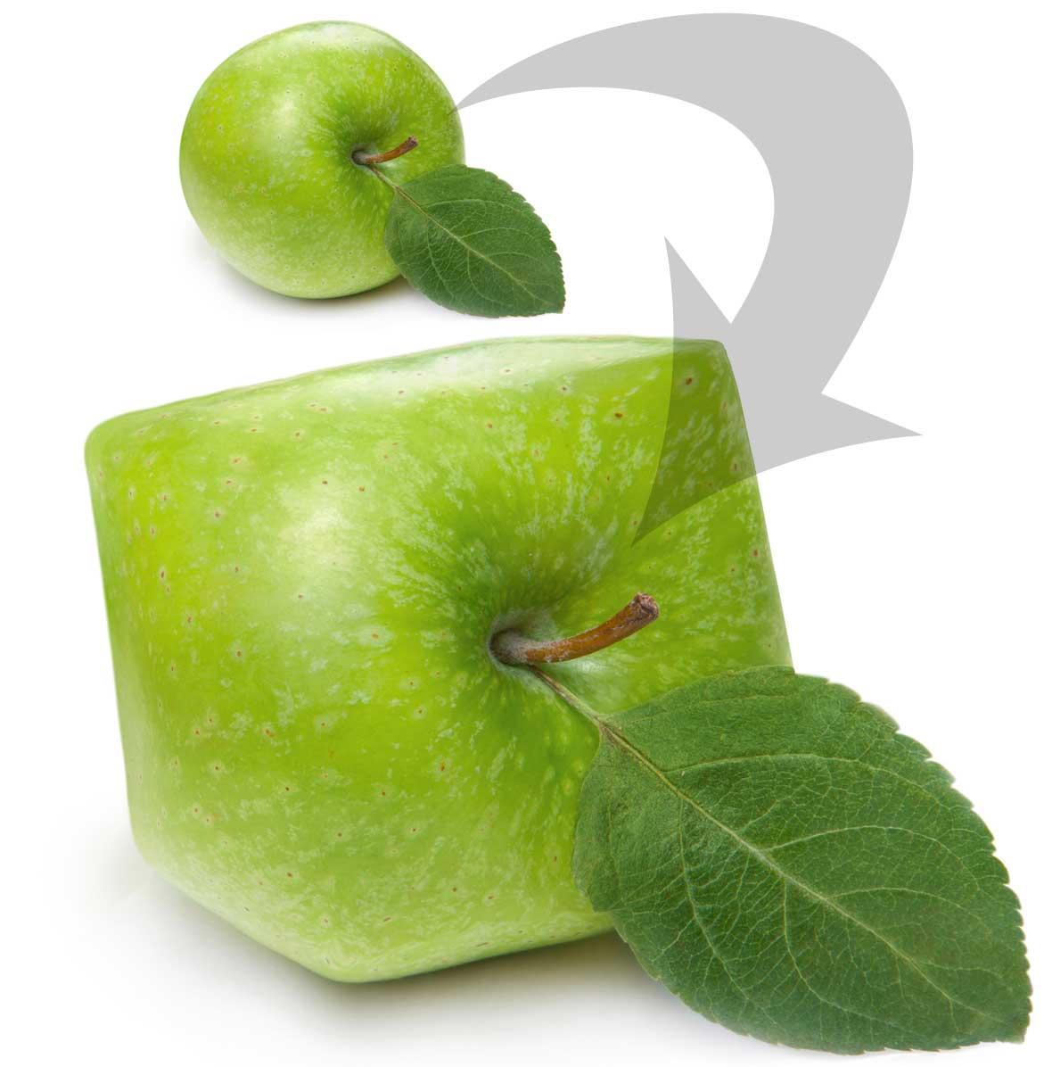 Dabei lässt sich der Filter weitaus vielfältiger einsetzen als nur für die Beautyretusche und das Bodyforming (mehr zu diesem Thema siehe DOCMA 52 ab Seite 18). Neben der Stilisierung von Bildelementen, wie etwa oben am Beispiel eines Apfels gezeigt, können Sie mit dem Filter auch wellige Horizonte glätten, Verbogenes gerade richten oder Gerades verbiegen …