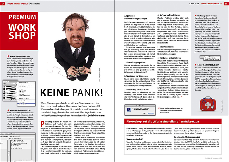 PREMIUM-WORKSHOP: Keine Panik Wir erläutern die häufigsten Probleme, die bei der Bedienung von Photoshop auftreten, und zeigen Lösungswege auf.