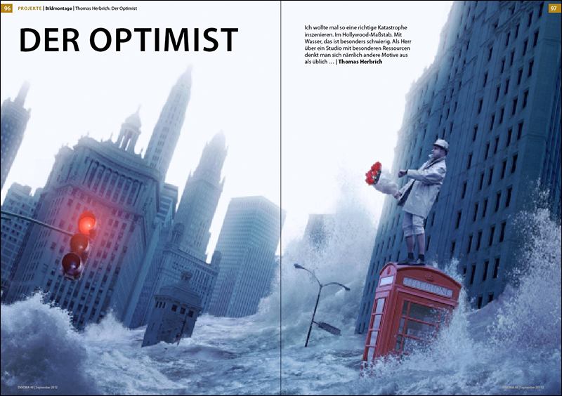 Der Optimist In den Fotomontagen von Thomas Herbrich geht es meist um die Verdrehung von Wirklichkeit.