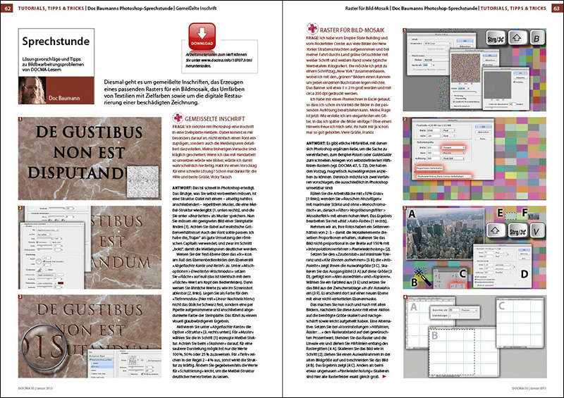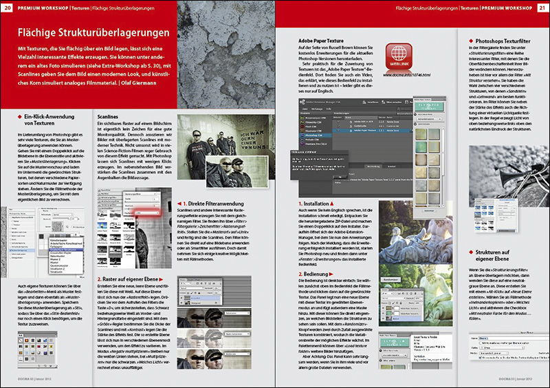 Die DOCMA-Ausgabe 50 (1-2013) bekommen Sie im Zeitschriftenhandel und bei uns im Webshop (als gedruckte Ausgabe und als ePaper zum Sofortdownload).