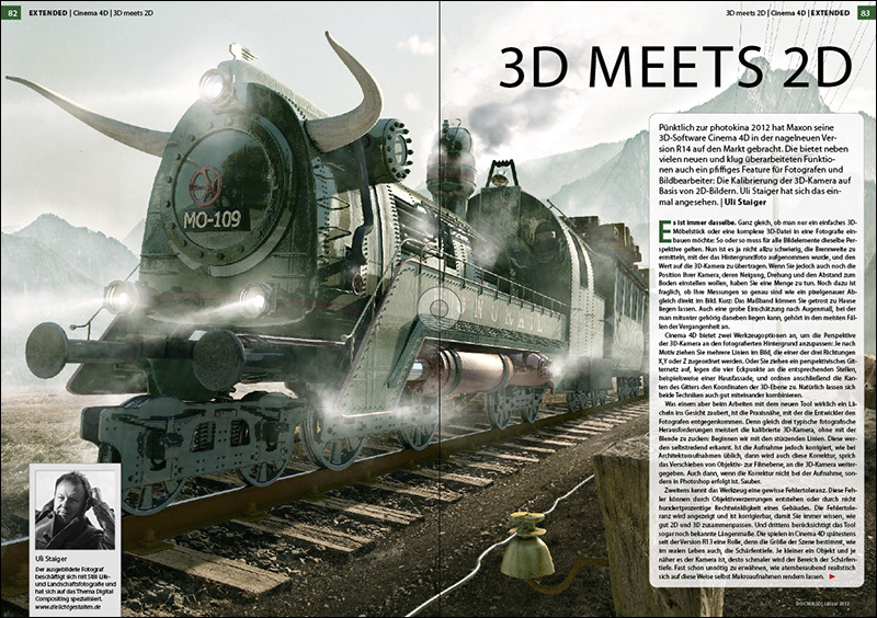 3D meets 2D Cinema 4D bietet in der neuen Version R14 neben vielen neuen und klug überarbeiteten Funktionen auch ein pfiffiges Feature für Fotografen und Bildbearbeiter: Die Kalibrierung der 3D-Kamera auf Basis von 2D-Bildern.