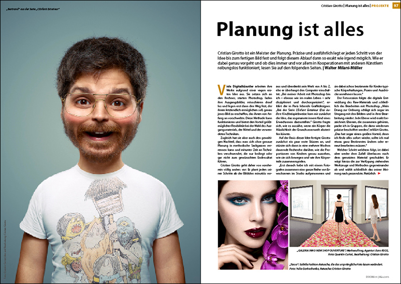 Planung ist alles Der Digitalkünstler Cristian Girotto ist ein Meister der Planung. Präzise und ausführlich legt er jeden Schritt von der Idee bis zum fertigen Bild fest und folgt diesem Ablauf dann so exakt wie irgend möglich.