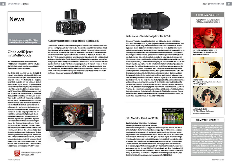 Die DOCMA-Ausgabe 53 (4-2013) bekommen Sie im Zeitschriftenhandel und bei uns im Webshop (als gedruckte Ausgabe und als ePaper zum Sofortdownload).