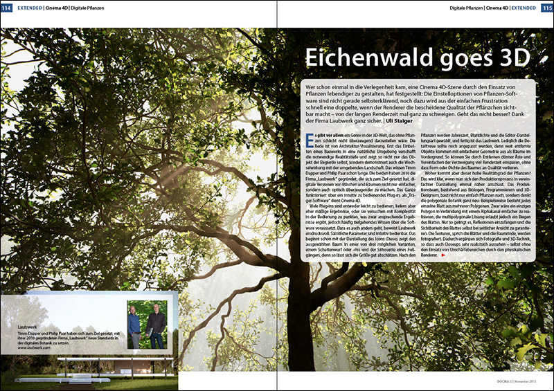 Eichenwald goes 3D Mit dem intuitiv bedienbaren „Laubwerk“-Plug-in für Cinema 4D lassen sich überzeugend wirkende Pflanzen generieren.
