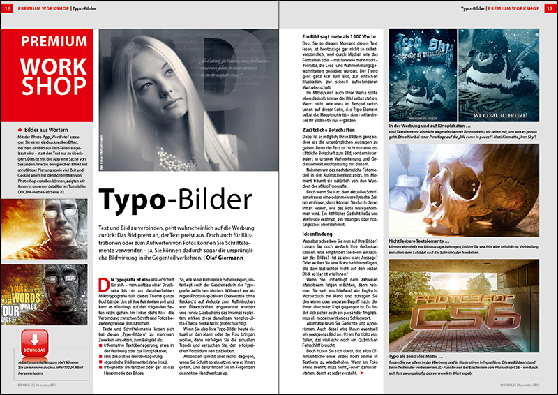 Die DOCMA-Ausgabe 55 (6-2013) bekommen Sie im Zeitschriftenhandel und bei uns im Webshop (als gedruckte Ausgabe und als ePaper zum Sofortdownload).