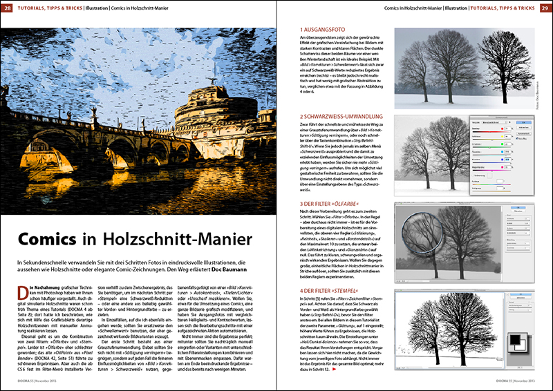 Comics in Holzschnitt-Manier So verwandeln Sie Fotos in eindrucksvolle Illustrationen, die aussehen wie elegante Comic-Zeichnungen oder Holzschnitte.