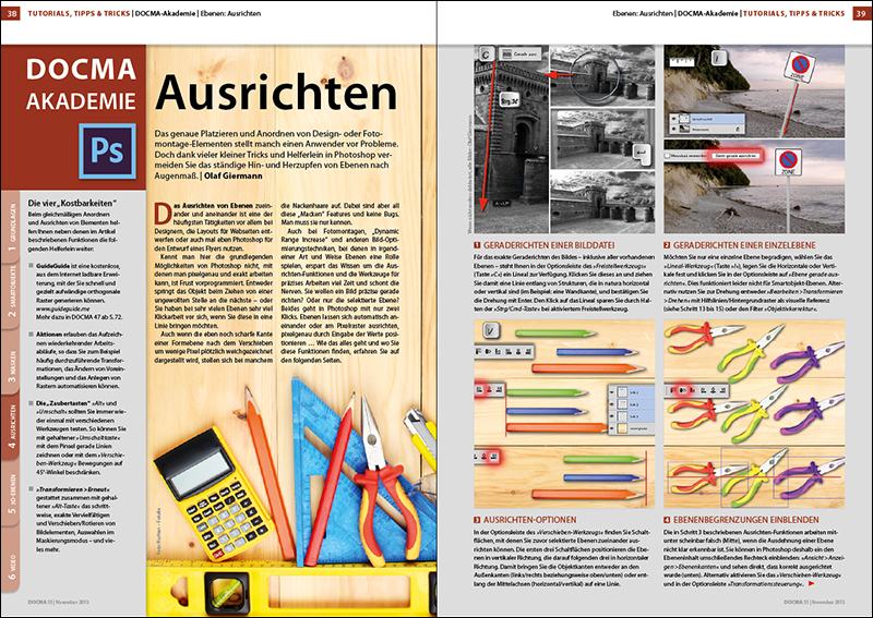DOCMA-Akademie: Photoshop – Ausrichten Das genaue Platzieren und Ausrichten von Elementen ist keine Hexerei.