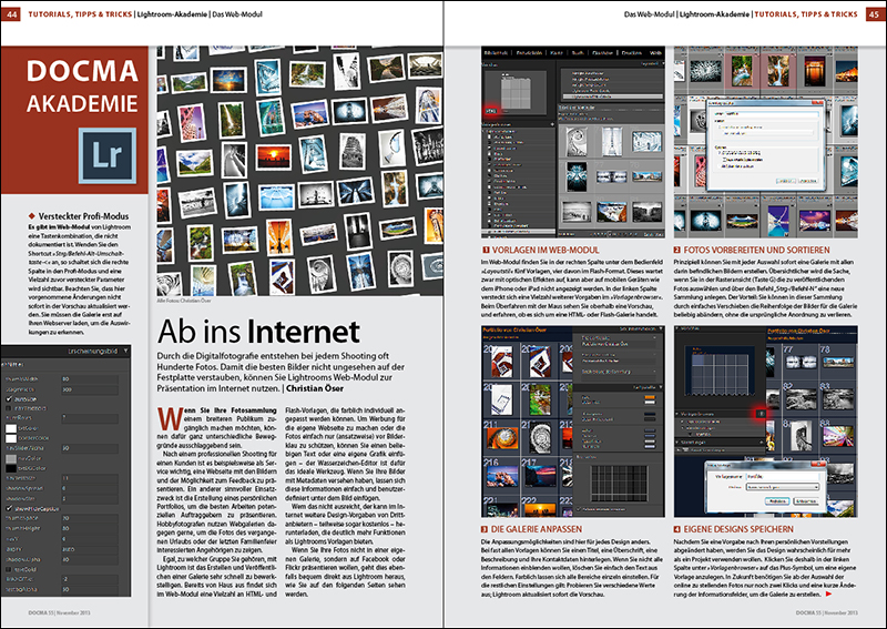 DOCMA-Akademie: Lightroom – Ab ins Internet Mit Lightrooms Web-Modul können Sie Ihre Bilder schnell und unkompliziert im Internet präsentieren.
