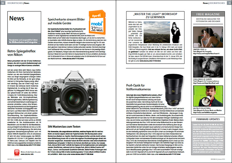 Die DOCMA-Ausgabe 56 (1-2014) bekommen Sie im Zeitschriftenhandel und bei uns im Webshop (als gedruckte Ausgabe und als ePaper zum Sofortdownload).