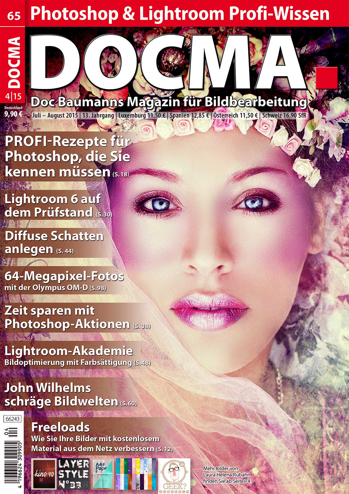 Die DOCMA-Ausgabe 65 (4-2015) bekommen Sie im Zeitschriftenhandel (ab dem 10. Juni 2015 ) und bei uns im Webshop – als gedruckte Ausgabe und als ePaper zum Sofortdownload.