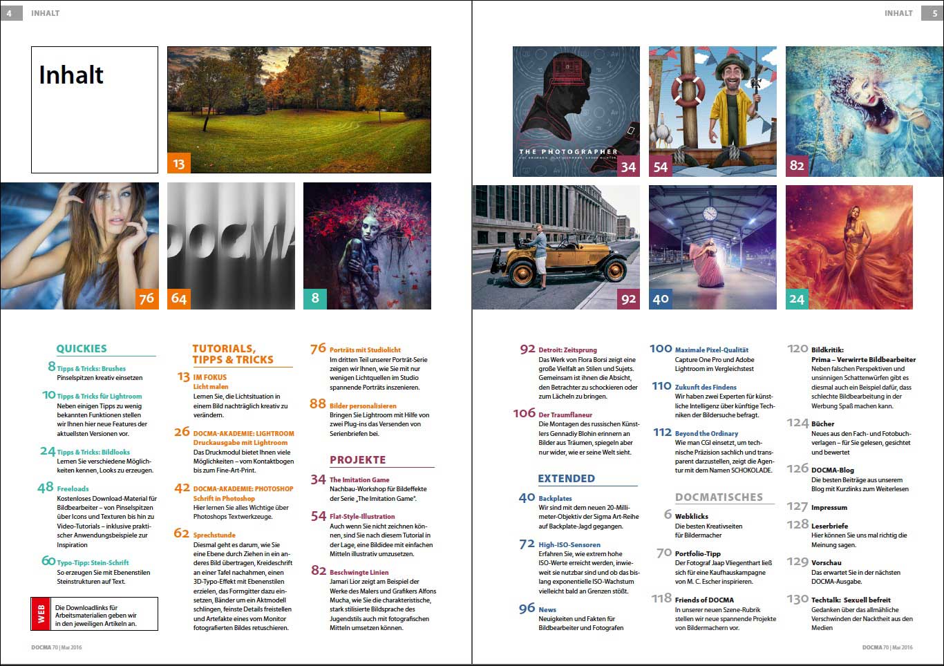 Die DOCMA-Ausgabe 70 (3-2016) bekommen Sie im Zeitschriftenhandel (ab dem 13. April 2016) und bei uns im Webshop – als gedruckte Ausgabe und als ePaper zum Sofortdownload.