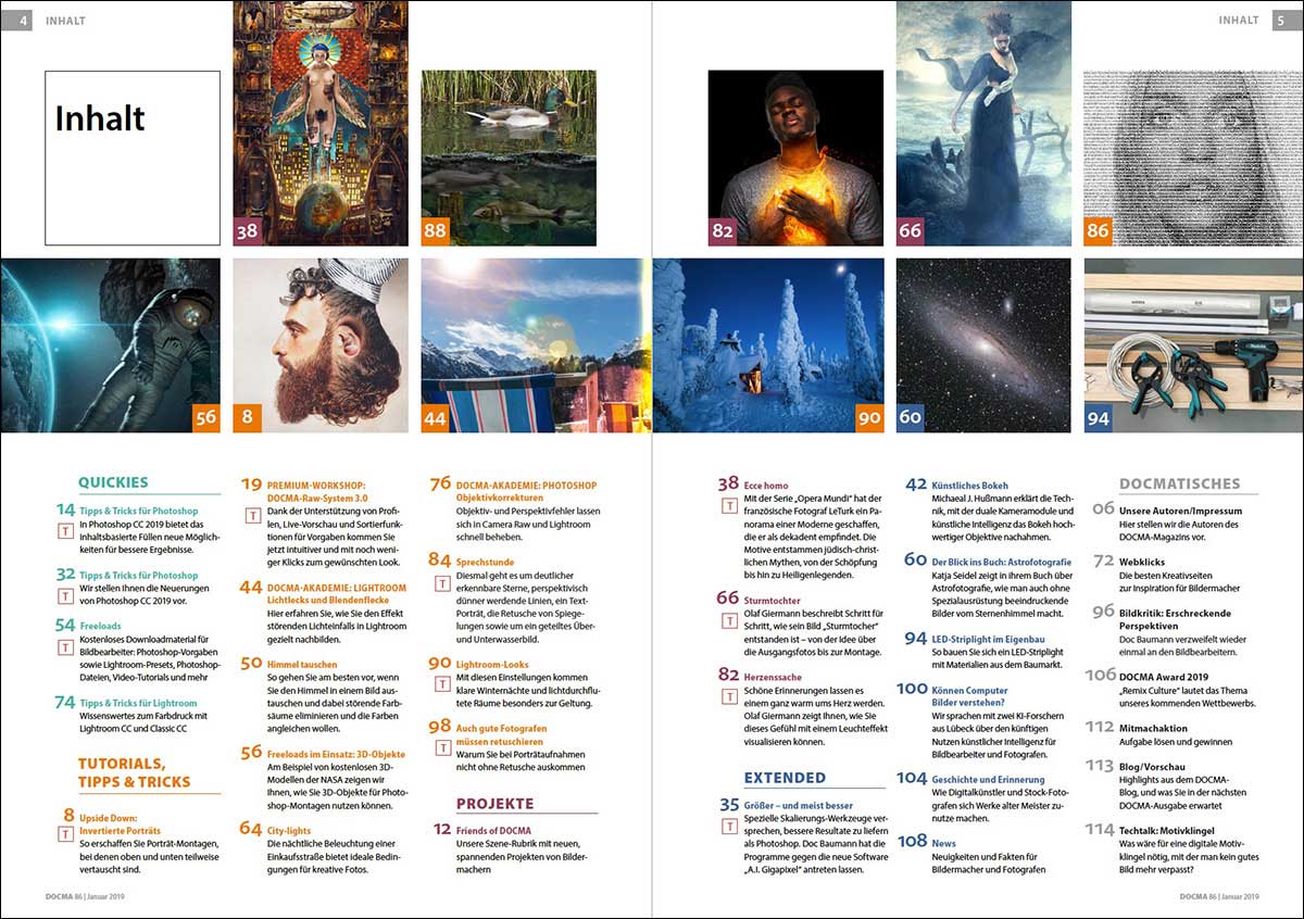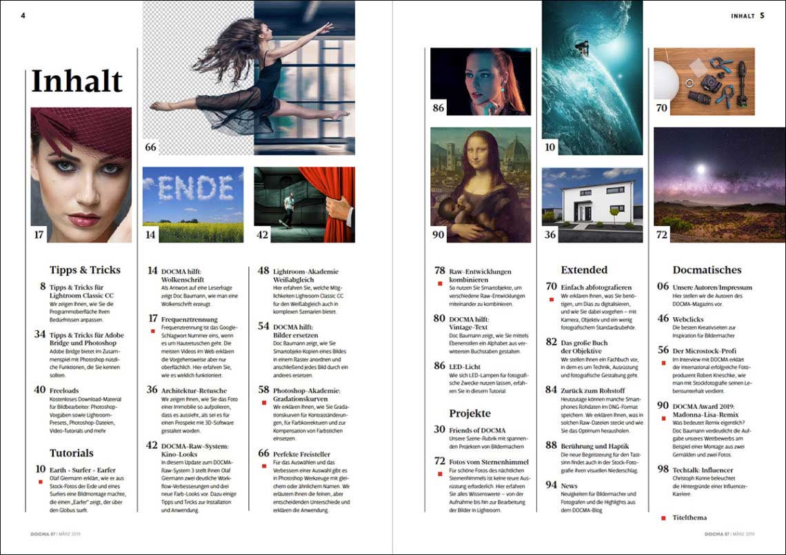 Die DOCMA-Ausgabe 87 (2-2019) bekommen Sie im Zeitschriftenhandel (ab dem 6. Februar 2019) und bei uns im Webshop – als gedruckte Ausgabe und als ePaper zum Sofortdownload.