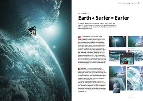 Earth + Surfer = Earfer Olaf Giermann erklärt, wie er aus Stock-Fotos der Erde und eines Surfers eine Bildmontage machte, die einen „Earfer“ zeigt, der über den Globus surft.