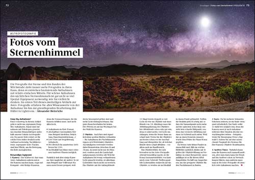 Fotos vom Sternenhimmel Für schöne Fotos des nächtlichen Sternenhimmels ist keine teure Ausrüstung erforderlich. Hier erfahren Sie alles Wissenswerte – von der Aufnahme bis hin zur Bearbeitung der Bilder in Lightroom.