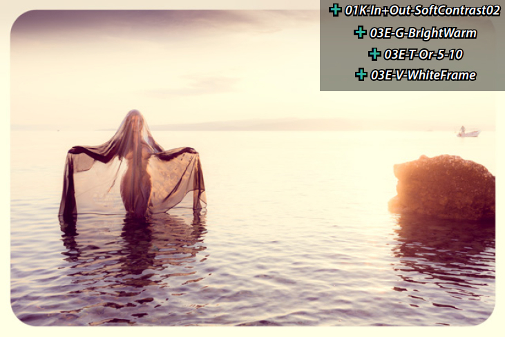 Technik: Zunächst werden die Kontraste mit dem Preset »01K-In+Out-SoftContrast02 « durch Verstärkung mittels der entsprechenden Regler merklich aufgesteilt, während die »Klarheit« mit einem Wert von »-50« für eine weiche Anmutung sorgt. Die Farbverschiebung in Richtung Gelb besorgt eine Kombination aus einer Gradationskurve vom Typ »03E-G-BrightWarm« und die subtile Orange-Tonung »03E-T-Or-5-10«.