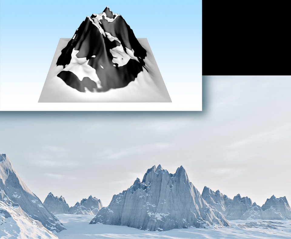 Wie in jedem neuen Release, so wurden auch in diesem ein paar Shader überarbeitet oder neu aufgenommen. Einer, der Ihnen beim Landschaftsbau oder der Architekturvisualisierung viel Arbeit abnimmt, ist die Geländemaske. Sie finden sie in den Effekten des »Materialeditors«. Dieser Shader wertet den Winkel eines Polygons in Bezug auf eine der drei Achsen, beispielsweise der Y-Achse, aus. So kann man zwei verschiedene Materialien auf einem Objekt verteilen, und zwar in Abhängigkeit von dessen Steilheit. Stellen Sie sich vor, Sie rufen ein Landschaftsobjekt auf, so könnten Sie in flacheren Gegenden Schnee auftragen, während die steileren den blanken Fels zeigen.