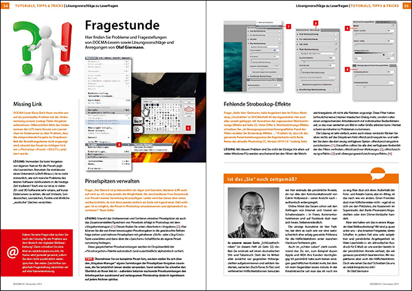 Diesen Kommentar finden Sie in Olaf Giermanns Fragestunde in der aktuellen DOCMA-Ausgabe, die Sie im Zeitschriftenhandel bekommen und in unserem Webshop bestellen können.