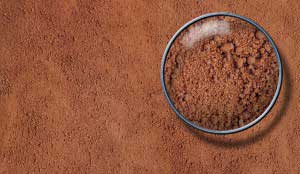 Nachdem die Suche im eigenen Fotoarchiv sowie in Bilddatenbanken keine wirklich befriedigenden Ergebnisse gebracht hatte – meist waren die Ausschnitte zu klein – und der gefrorene Boden draußen auch keine passenden Aufnahmen erlaubte, fiel mir beim morgendlichen Müsli-Anrühren auf, dass Fertigkakaopulver eigentlich genau die gewünschte Oberfläche hat: eine Mischung aus verschieden großen Klümpchen. Also schüttete ich das Pulver auf ein großes Tablett und fotografierte es so, dass die Beleuchtungsrichtung mit der des bereits ausgesuchten Gras-Bildes übereinstimmte. Die Färbung lässt sich später leicht modifizieren.