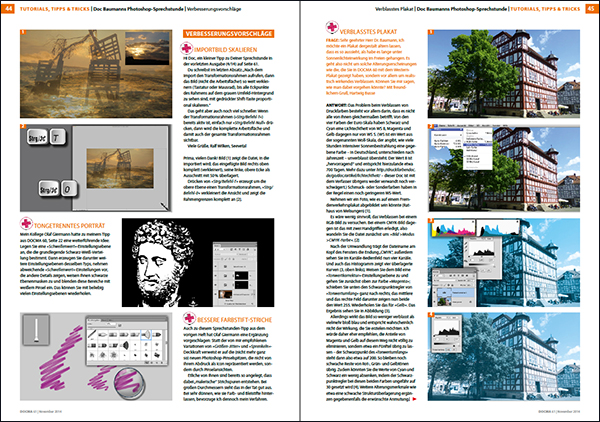 In der Photoshop-Sprechstunde der neuen DOCMA-Ausgabe macht Doc Baumann Lösungsvorschläge zu Leserfragen und zeigt unter anderem, wie man durch Lichteinwirkung verblasste Druckfarben glaubhaft simuliert und ein Plakat verblassen lassen kann.