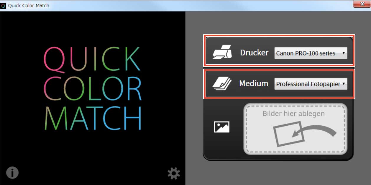 Geeignete Fotodrucker sind die Pixma-Pro-Modelle und der imagePrograf Pro-1000 von Canon, die Epson-Drucker SureColor SC-P800, SC-P600, SC-P400, der Stylus Photo R3000 und R2000 sowie der Expression Photo XP-960. Für das Farbmanagement bedient sich Quick Color Match der Plug-ins des jeweiligen Druckerherstellers, also Canon Print Studio Pro beziehungsweise Epson Print Layout.