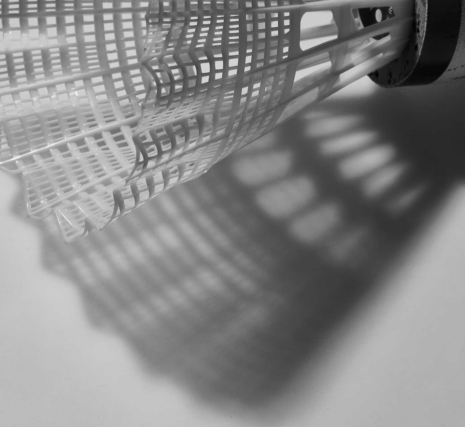 Bei sehr feinen Objekten wie dem zur Illustration verwendeten Federball würde ein solches Licht viele Schattenlinien erzeugen, die das Bild unruhig werden lassen, da Schatten und ausgeleuchtetes Objekt in der Abbildung in Konkurrenz zueinander treten. Ich habe das vermieden, indem ich auf den weißen Untergrund eine leicht mattierte Scheibe legte – die Scheibe eines einfachen rahmenlosen Bilderhalters mit Antireflexglas erwies sich als für diesen Zweck gut geeignet. Dadurch wurde das Licht gesoftet und der Schatten leicht weichgezeichnet dargestellt – ein Trick, um einerseits mit einem harten Licht die Details des Motivs herausarbeiten zu können, andererseits aber einen weichen Schlagschatten zu erzeugen.