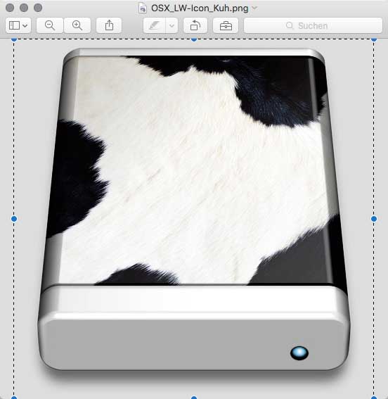 Öffnen Sie zunächst die png-Datei mit dem Programm Vorschau. Mit »cmd-A« wählen Sie die Grafik aus und kopieren sie mit »cmd-C« in die Zwischenablage. Nun klicken Sie im Informationen-Fenster auf das kleine Symbol und fügen das neue mit »cmd-V« aus der Zwischenablage ein. Falls das Laufwerksymbol immer noch nicht korrekt ausgetauscht ist, hilft ein Neustart des Finders. Hierzu klicken Sie auf das Findersymbol im Dock und rufen anschließend mit der Tastenkombination »cmd-alt-esc« das Fenster »Force Quit Applications« auf. Wählen Sie darin den »Finder« aus und klicken Sie auf »Neu starten«. Dann müsste der Symboltausch vollzogen sein.