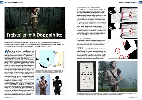 Freistellen mit Doppelblitz: Mehr zum Thema Licht lesen Sie in der neuen DOCMA-Ausgabe, die Sie im Zeitschriftenhandel bekommen und in unserem Webshop bestellen können. Michael J. Hußmann hat mit Hans Werner Briese gesprochen, einem Pionier des Studiolichts, der mit einigen Missverständnissen rund um die Lichtsetzung aufräumt.