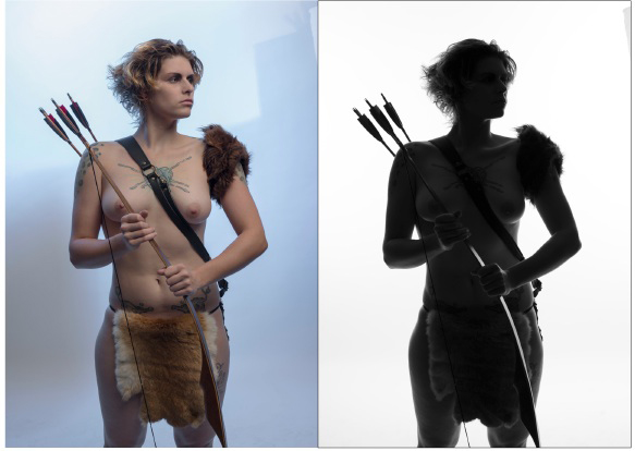 Warum nicht gleich die perfekte Maske mit allen Details mitfotografieren? Die Technik, neben dem eigentlichen Foto in einem zweiten Schritt die Freistellmaske mitzufotografieren, ist schon lange bekannt: Freistellen mit Doppelblitz! In der Stilllife-Fotografie fotografiert man nach der eigentlichen Aufnahme einen weißen Hintergrund, vor dem das Motiv als Silhouette erscheint. Dieses Silhouettenfoto ist dann zugleich die Freistellmaske. Die dazu nötige Umschaltung der Beleuchtung ist bei Stillleben einfach, denn das Objekt läuft nicht weg und man hat Zeit, das Licht zu wechseln. Für People-Aufnahmen eignet sich die manuelle Umschaltung nicht, da kleinste Bewegungen die Maske unbrauchbar machen würden. Man braucht eine Blitzweiche, die bei zwei schnell hintereinander folgenden Aufnahmen zunächst den Hauptblitz auslöst und damit das Modell richtig beleuchtet. Bei der zweiten Aufnahme leuchten weitere Blitze den Hintergrund gleichmäßig aus; das Modell bleibt dunkel, um die Silhouette zu erzeugen.