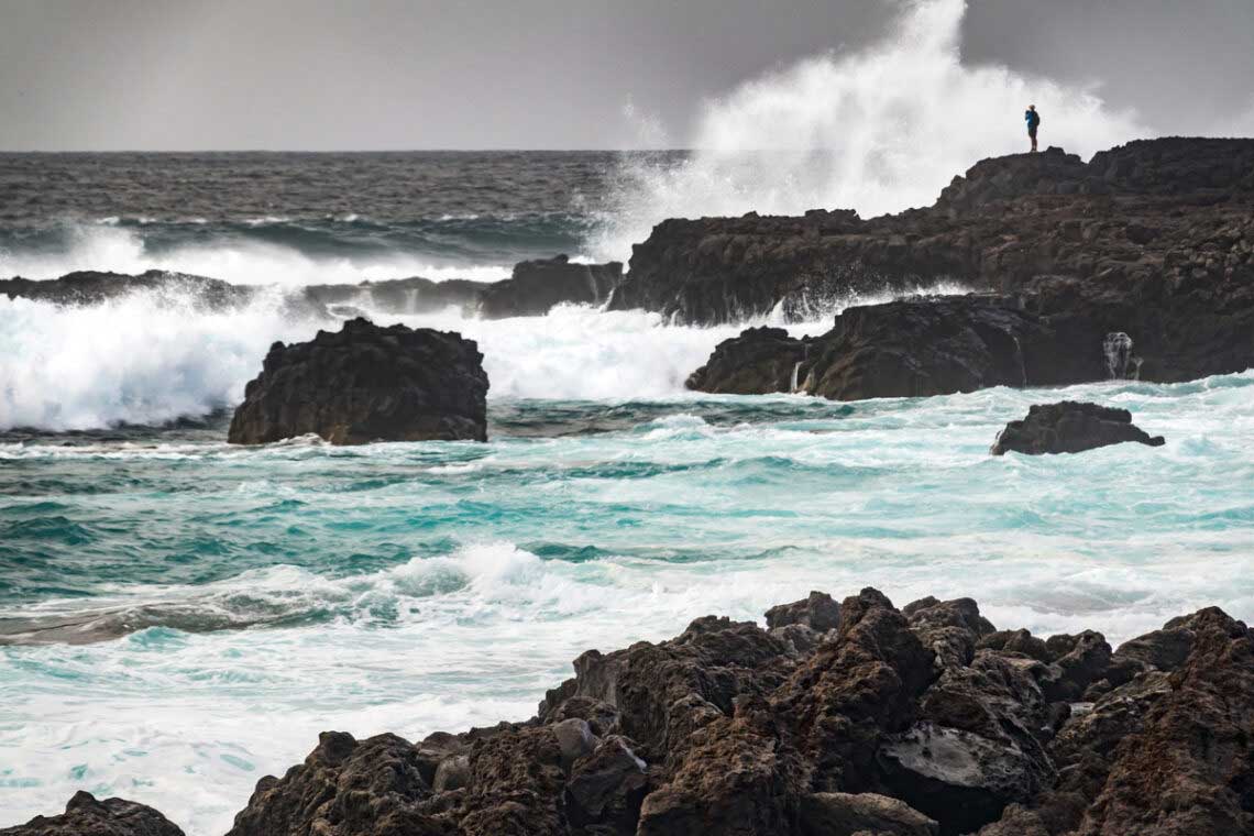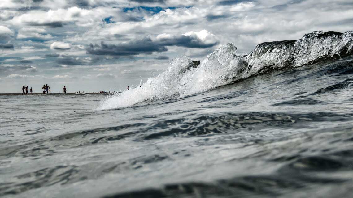 2) Ein 8-mm-Weitwinkel lässt auch eine nur 40 Zentimeter hohe Welle mächtig und die Menschen im Vergleich winzig erscheinen und verfälscht so die Größenverhältnisse.