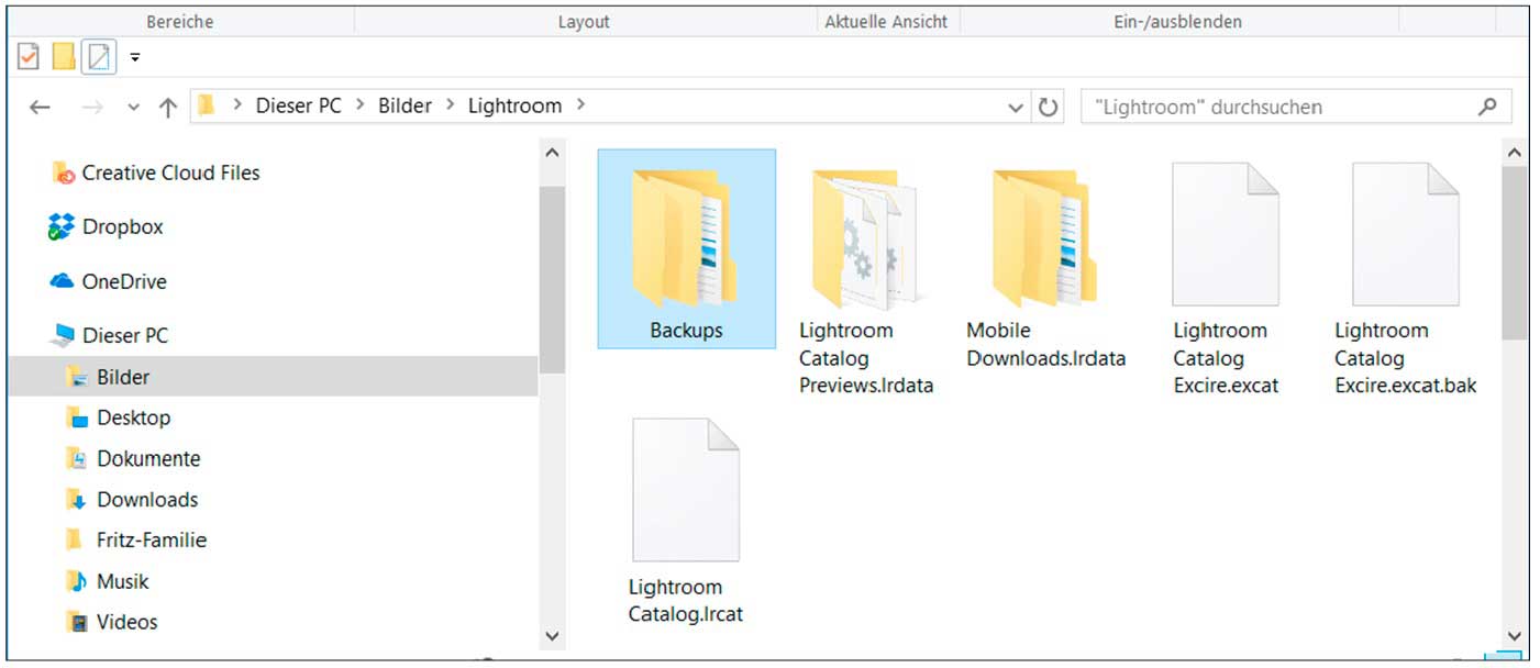 Am gleichen Speicherort wie dem des Katalogs legt Lightroom eine Datei mit Vorschaubildern Ihrer importierten Fotos an. Dadurch ist Lightroom in der Lage, auch ohne Originaldateien zu arbeiten. Das unterscheidet Lightroom von Adobe Bridge, die Ihnen die Bilder nur dann anzeigt, wenn diese tatsächlich für die Software verfügbar sind.