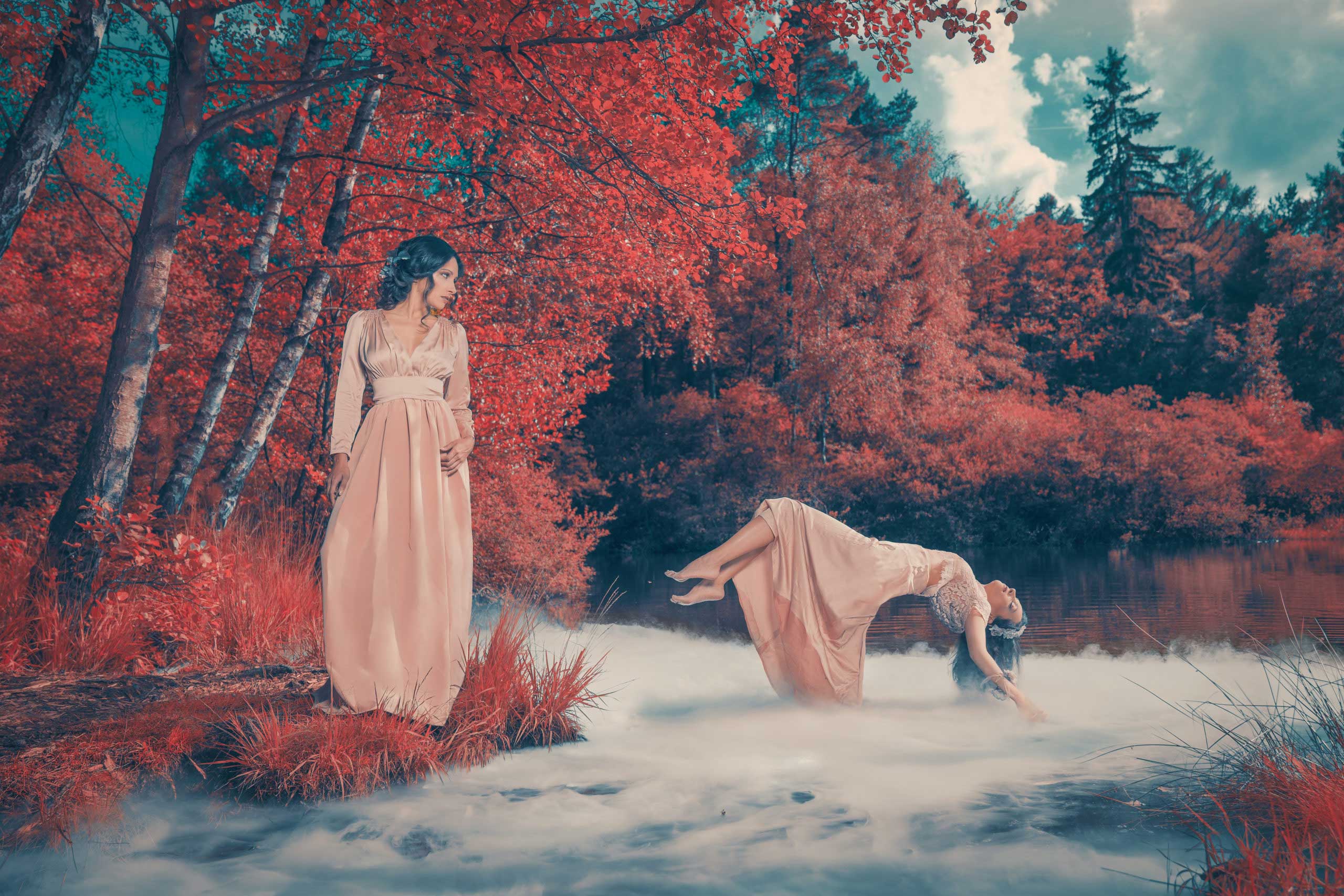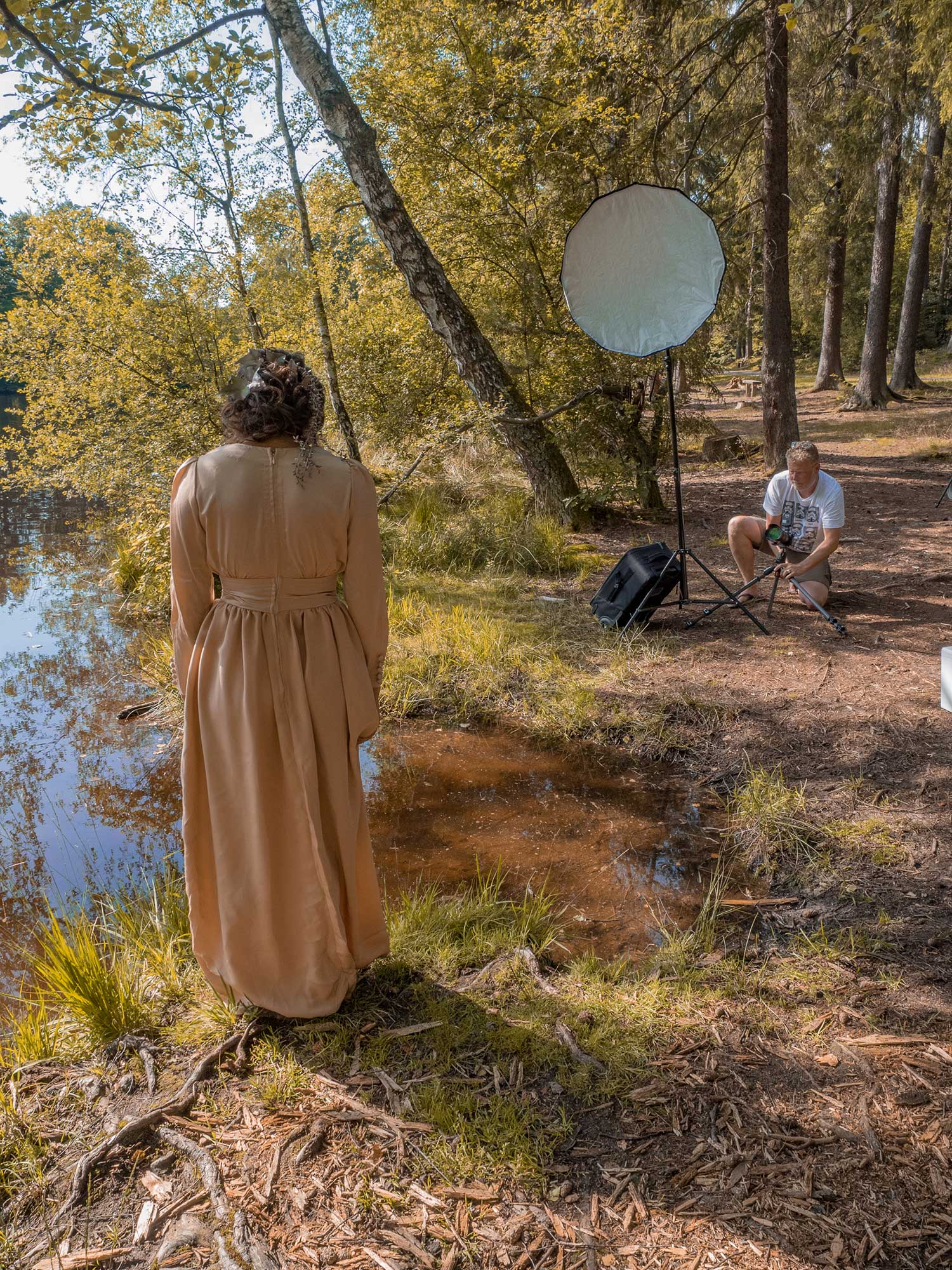 Möglichkeit 1: Das Model springt für das Foto in die Luft. Es erfordert jedoch einiges an Übung, damit die Pose schwebend und nicht wie gesprungen aussieht. Wichtig ist, dass die Füße waagrecht gehalten werden und man in der Aufsprungphase oder noch besser genau am Scheitelpunkt des Sprunges auslöst. Ist das Model schon wieder auf dem Weg nach unten, bleiben die Haare meist noch in der Luft stehen und die Illusion ist dahin.