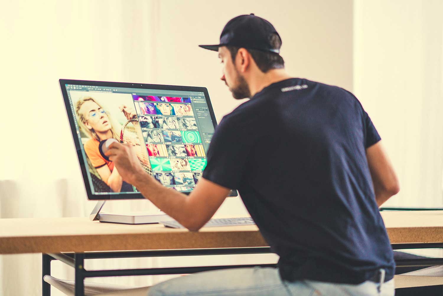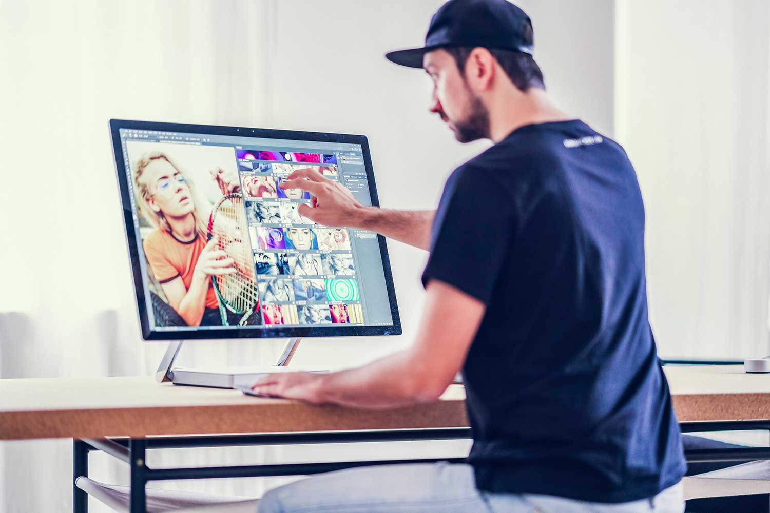 Seit Monaten arbeite ich täglich mit dem Microsoft Surface Studio. Das Hauptmerkmal des Studios ist sein Display, das sowohl mit den Fingern als auch mit dem mitgelieferten Stift bedient werden kann. Gerade Retuschieren, Freistellen oder digitales Zeichnen gehen leichter von der Hand, da man mit dem Stift direkt auf der Zeichenfläche arbeitet.