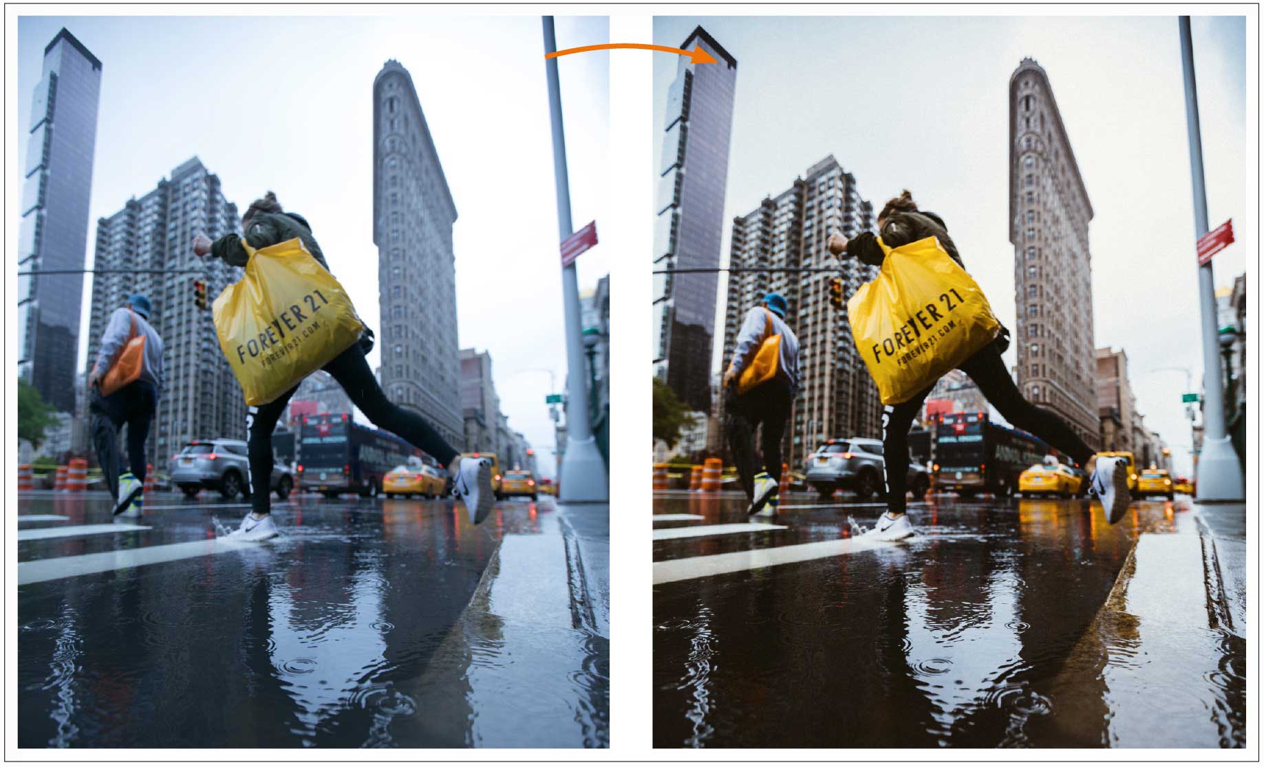Lange konnte ich persönlich mit schlechtem Wetter nichts anfangen. Ich hasse Regen und ich hasse es, nass zu werden. Als bei einem New York-Aufenthalt ein kompletter Tag Regen angekündigt wurde, war meine Stimmung natürlich im Keller. Ich bin dennoch vor die Tür gegangen und habe dann meine absoluten Lieblingsbilder dieses Aufenthaltes geschossen. Patschnass watschelte ich durch die Straßen New Yorks – auf der Suche nach Motiven, die man bei schönem Wetter eben nicht bekommt. Ich kann es jedem wirklich nur empfehlen!