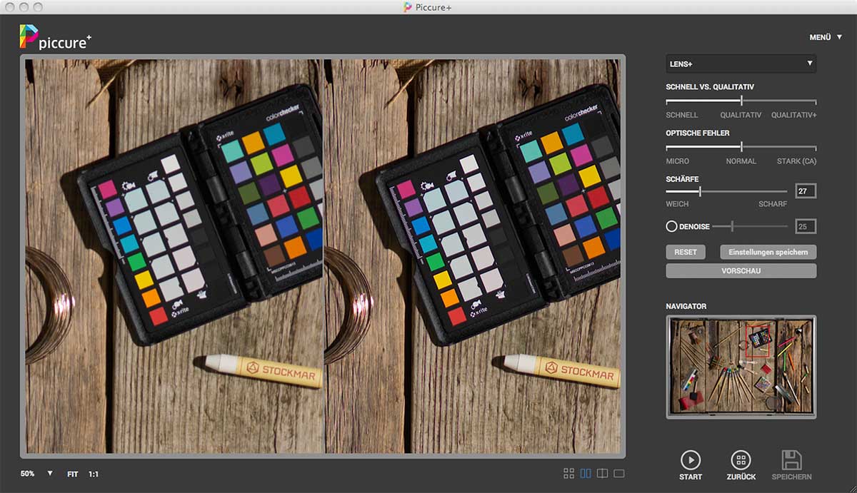 Musste sich das Vorgängerprodukt noch an der Entwacklungsfunktion von Photoshop CC messen lassen, bietet piccure+ mit der Korrektur von Abbildungsfehlern beliebiger Objektive jetzt Features, die ihm eine Alleinstellung verleihen. Für 129 Euro können Sie eine Lizenz erwerben, die den Einsatz auf zwei Computern erlaubt. Besitzer der Vorversion erhalten ein Upgrade zum halben Preis.