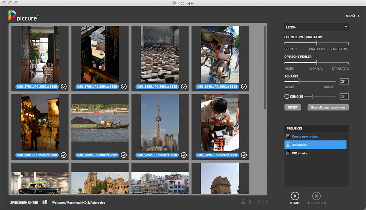 Zunächst einmal ist die neue Version piccure+ nun eine Anwendung für Windows und OS X, die sich als Zusatzmodul in Photoshop (ab CS4), Photoshop Elements (ab Version 7) und Lightroom (ab Version 3) einbinden lässt, aber auch als Standalone-Software genutzt werden kann. Letzteres ist immer dann sinnvoll, wenn Sie mehrere Bilder im Stapelbetrieb bearbeiten wollen; für Einzelbilder im JPEG- oder TIF-Format empfiehlt es sich aber weiterhin, piccure+ als Plug-in aus Ihrer bevorzugten Anwendung heraus aufzurufen.