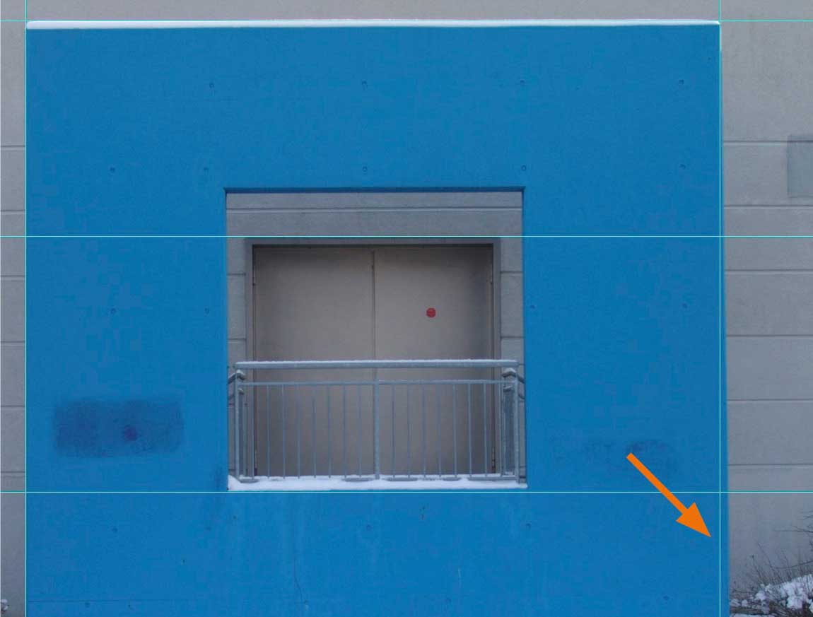 Wenn Sie minimalistisch wirkende oder gar abstrakte Fotos erreichen wollen, achten Sie auf ein exaktes, vertikales und horizontales Ausrichten der Linien im Bild – sofern es sich nicht um gewollte Diagonal- oder Fluchtlinien handelt. Sie können die Kantenausrichtung leicht überprüfen, indem Sie aus den Linealen Hilfslinien an die entsprechenden Kanten ziehen. Selbst wenn es nur kleinere Abweichungen wie im Beispiel sind – der Betrachter merkt später unbewusst, dass hier irgendetwas noch nicht optimal ist. Korrigieren Sie deshalb sehr genau.