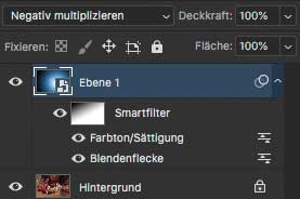 Erzeugen Sie eine mit schwarz gefüllte Ebene, wandeln Sie diese in ein Smartobjekt um, ändern Sie die Füllmethode in »Negativ multiplizieren« und wenden Sie den Renderfilter »Blendenflecke« an. Art, Position und Größe der Lichteffekte können Sie so jederzeit ändern. Blenden Sie unerwünschte Teile der erzeugten Überstrahlungen mit der Filtermaske aus. Die Farben der Blendenflecke ändern Sie schnell mit einer Einstellungsebene vom Typ »Farbton/Sättigung« als Schnittmaske. In Photoshop CC können Sie die Korrektur auch direkt als Smartfilter anwenden.