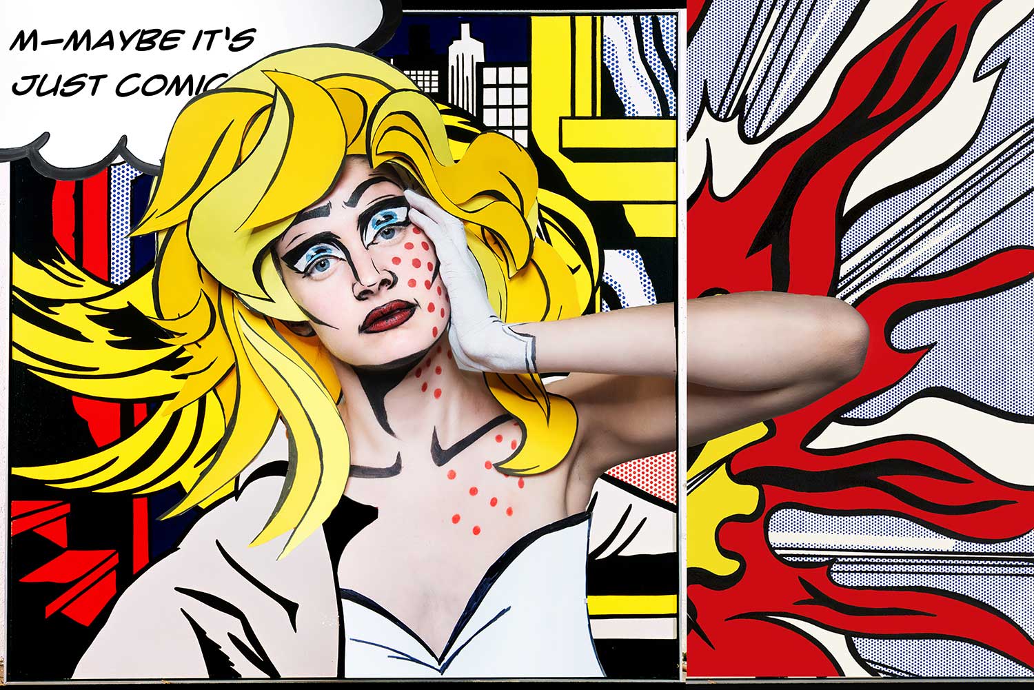 Das Gesicht der namenlosen Frau bei Lichtenstein ist dagegen stilisiert, es zeigt den Archetyp einer schönen Frau. Der Bildinhalt ist keine statische Situation; wir sehen kein Modell, das für den Künstler posiert. M-Maybe erscheint vielmehr als eine Momentaufnahme, wie ein Standbild aus einem Film oder eben ein Panel eines Comics. Der Betrachter denkt spontan darüber nach, was vor dieser Szene geschehen sein könnte und was danach passieren wird. Dabei führt der Text in der Gedankenblase auf eine konkrete Fährte – während über das Lächeln der Mona Lisa viel spekuliert wurde, macht Lichtensteins Bild die Gedanken der Frau sichtbar. Dem Kunsthistoriker Eckhard Schneider zufolge erhöht der private Tonfall die „Aura der Authentizität“, besonders deutlich im zögerlich geäußerten „M-Maybe.“