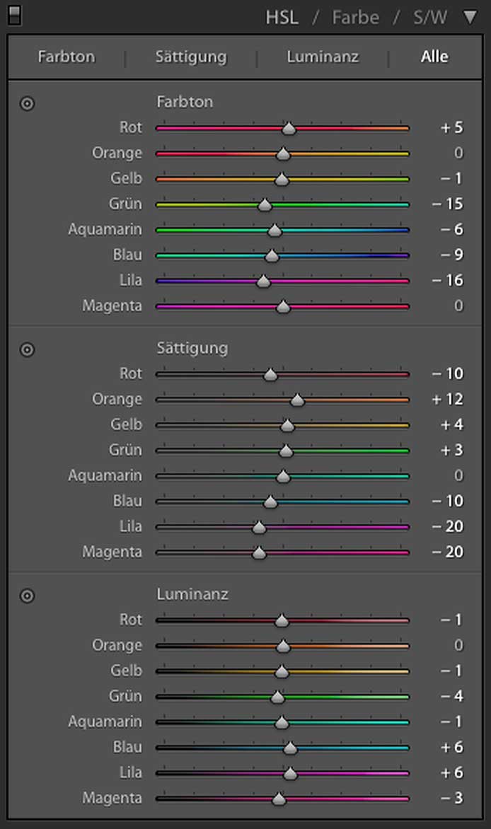 Datacolor geht hier einen anderen Weg: Aus der Differenz zwischen Ist- und Soll-Farben berechnet SpyderCheckr Presets für die unterstützten Raw-Konverter, die den Farbton, die Helligkeit und die Sättigung in acht Farbbereichen anpassen. Das bietet den Vorteil, dass sich der Effekt der Kalibrierung im »HSL«-Panel von Camera Raw oder Lightroom kontrollieren lässt; in ein DNG-Kameraprofil hingegen könnten Sie nicht ohne eine spezielle Software hineinschauen. Zudem steht es Ihnen frei, einzelne Reglerstellungen nach eigenem Geschmack zu modifizieren und die geänderte Version als neues Preset zu speichern. Übrigens spricht nichts dagegen, eine Kalibrierung per DNG-Kameraprofil mit einer weiteren Kalibrierung per SpyderCheckr zu kombinieren, um die Farbwiedergabe noch weiter zu verbessern.
