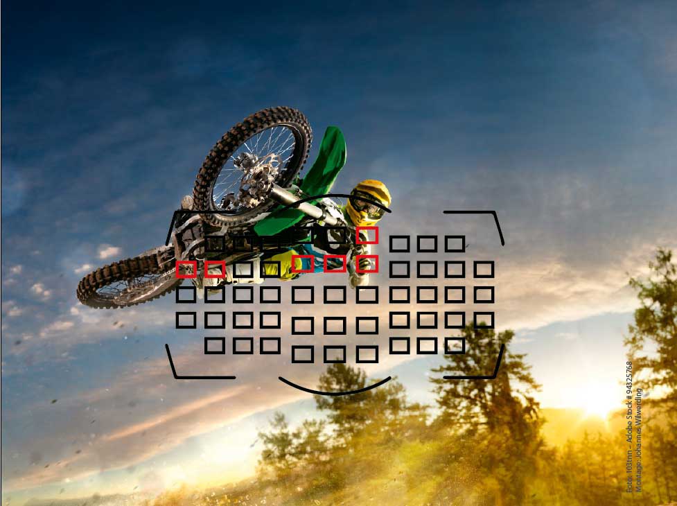 Am Funktionsprinzip der Phasendetektion hat sich bis heute nichts geändert. Lediglich die Zahl der Messfelder ist gestiegen, und ebenso der Teil des Bildfelds, den die Messfelder abdecken. Am Rand ist allerdings keine Phasendetektion möglich – durch den begrenzten Strahlengang im AF-Sensor und teilweise auch durch eine Vignettierung im Objektiv wird ein großer Teil der Randstrahlen ausgeblendet, so dass keine Phasenverschiebung mehr ermittelt werden kann.