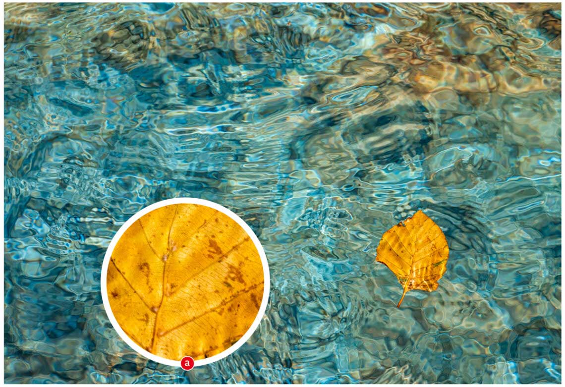 Mark James Ford: Ich arbeite eigentlich mit allen Makrobrennweiten, die Sigma im Portfolio hat. Das neue 105er vereint allerdings drei für mich wichtige Basiseigenschaften: Zum einen ist es relativ handlich, so dass ich ohne Stativ auskomme. Zweitens empfinde ich den Mindestabstand beim Abbildungsmaßstab 1 : 1 als sehr komfortabel. Drittens passt die – gegenüber längeren Brennweiten höhere – Flexibilität gut zu meiner Arbeitsweise. Und dann ist da natürlich die Abbildungsqualität. Die Bilder im Verzascatal habe ich mit einer Sony a7R II, also im Vollformat mit über 40 Megapixeln Auflösung aufgenommen. Sie sind knackscharf bis in die Ecken. Vermutlich sind 40 Megapixel bei diesem Objektiv noch lange nicht das Ende der Fahnenstange. Schauen Sie das Bild mit dem gelben Blatt an, das leicht unter Wasser liegt. Es ist aus der Hand aufgenommen und man sieht trotzdem diese phänomenalen Details (a).